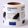 Cam ya da plastik şişe yüzeyine tam yapışan, neme ve şuruplu parmağa karşı dayanıklı selefon kaplamalı etiketler.